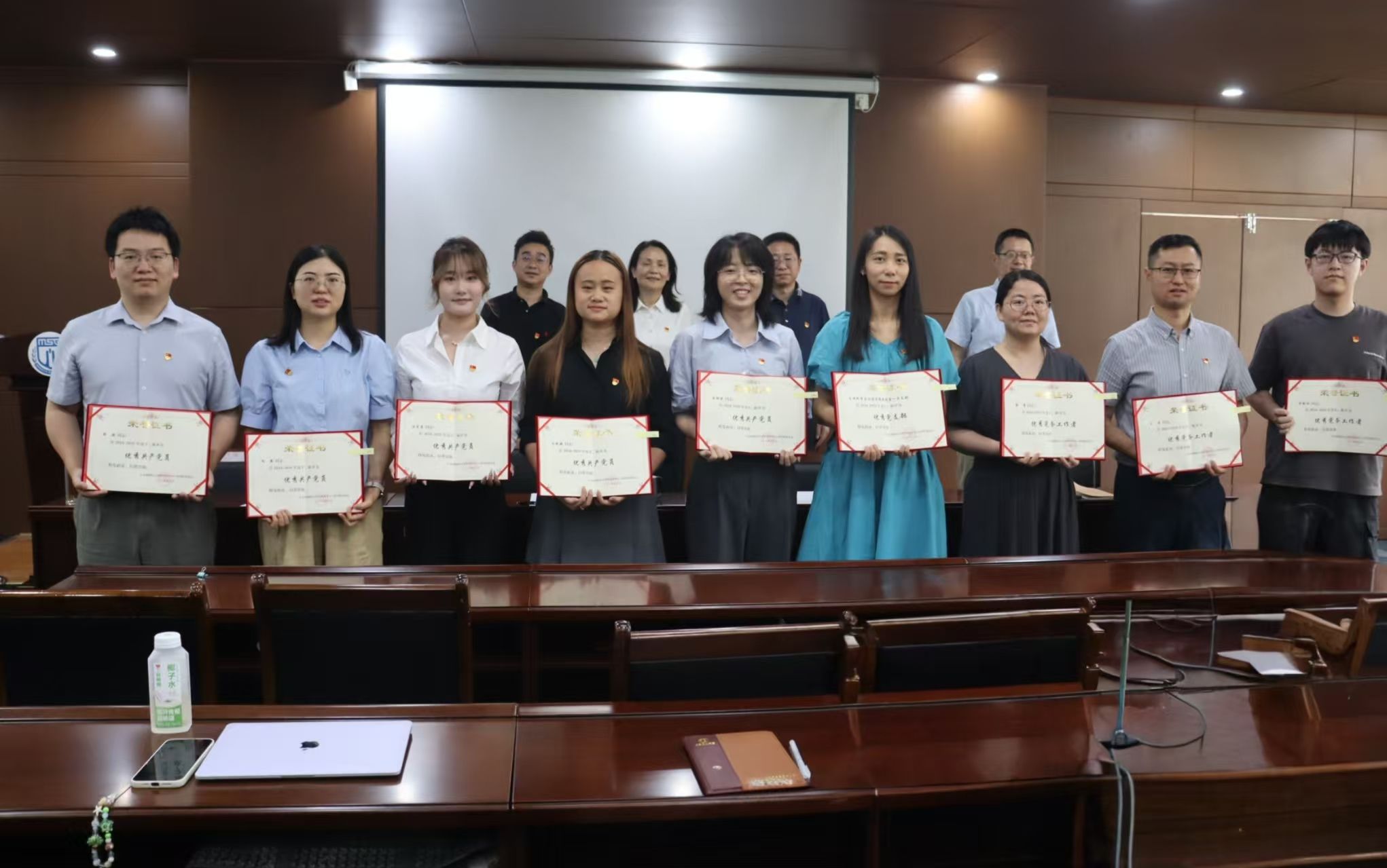 公司经理鲁万波同志通报了学院在学校2025年“两优一先”创建活动中受表彰的情况,学院教师第二支部荣获学校“先进基层党组织”称号,徐淼同志获评学校“优秀共产党员”。同时,宣读了学院“两优一先”表彰决定。学院领导班子共同为优秀共产党员、优秀党务工作者和先进党组织颁奖。受到表彰的党员教师代表徐淼,党员员工代表林昱辰先后进行交流发言。他们深深感谢党组织多年来的教育和培养,并结合工作实际、学习成效和社会实践,分享了进一步充分发挥党员先锋模范作用和党支部战斗堡垒作用等方面的体会与感悟。